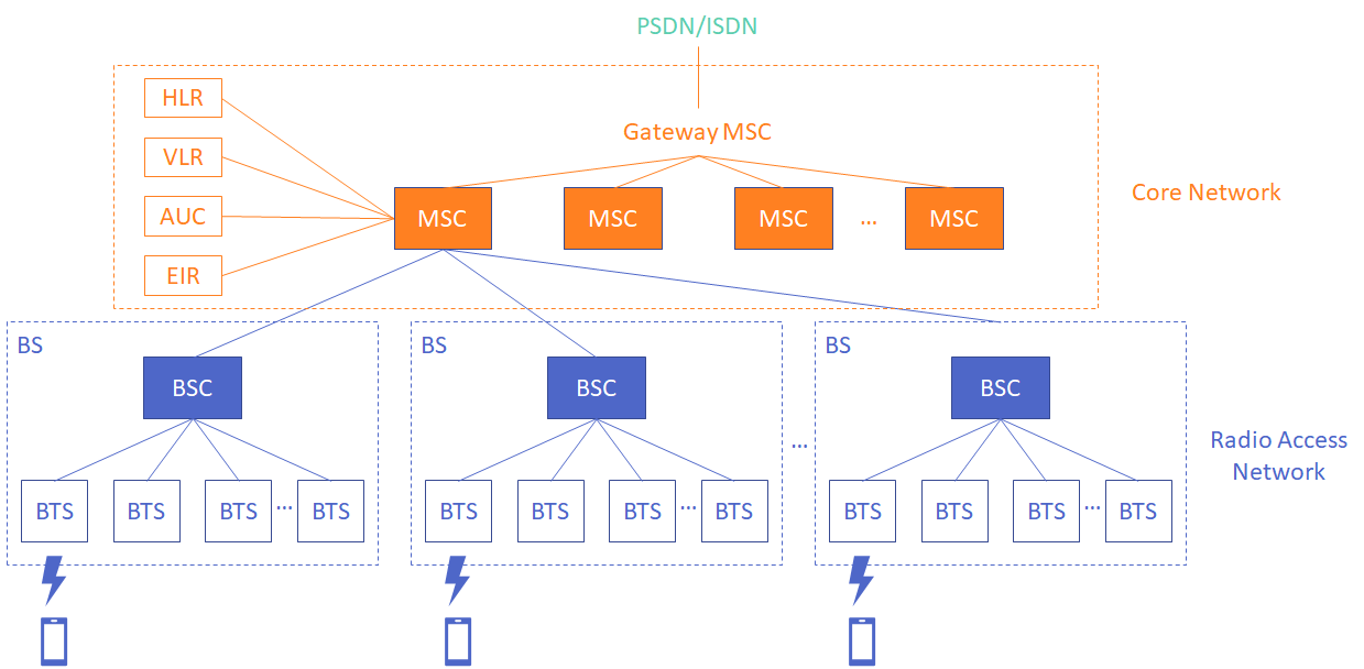 - BSC: electronics,進行運算、功率控制、選通道,一個BSC可以管上百台BTS以上。不同的 BSC 要進行溝通要經過 MSC,在 4G(不確定 3G 有沒有)有多「BSC 和 BSC 之間的連線」,連不同的基地台而不用經過機房。